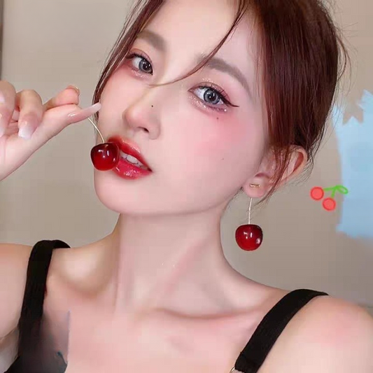 Trendy Korean Cherry Drop Earrings For Women Cute Long Stem Minimalist Red Cherry Earrings