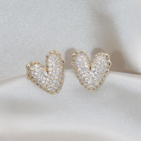 Zircon Heart Stud Earrings – Trendy Korean Fashion Jewelry For Girls & Women